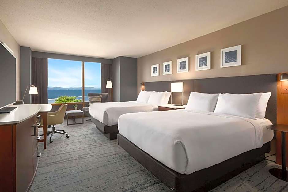 This room features views of Lake Champlain, a 65-inch HDTV with HBO, work desk, and free WiFi.