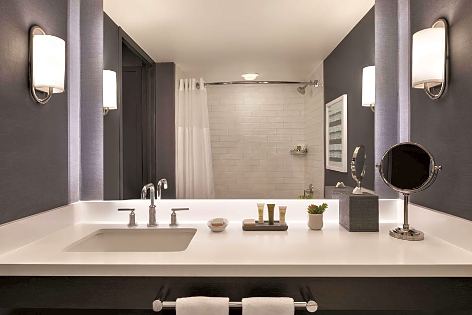 This room features a 55-inch HDTV with HBO, work desk, and free WiFi and a city view.